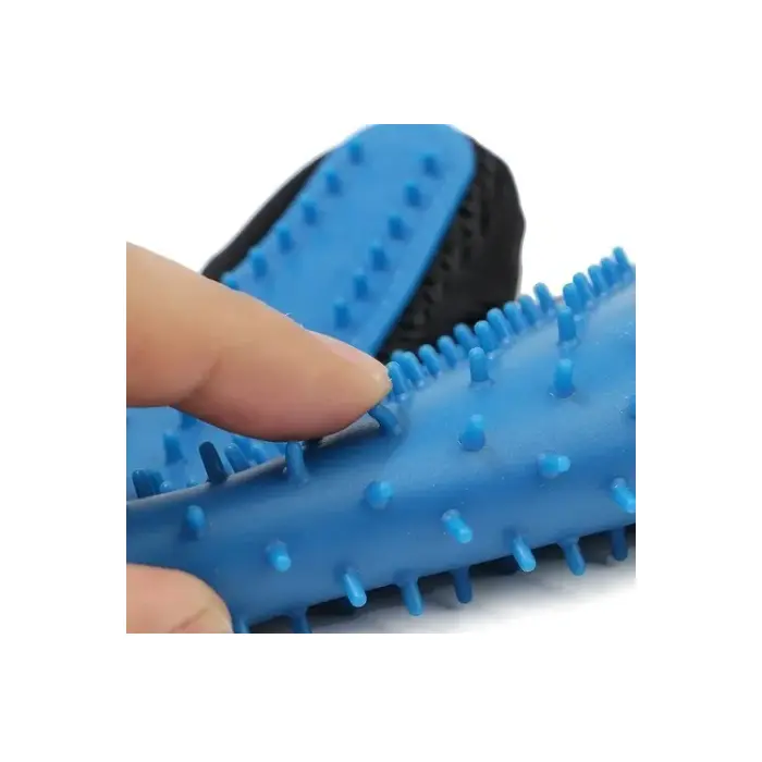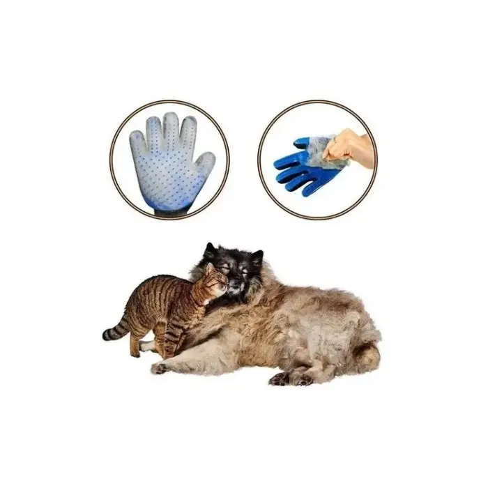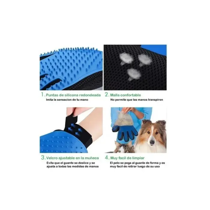 GUANTE PARA PEINAR * Guante derecho. * Excelente guante con puntas de silicona. Sirve para masajear, peinar y desenredar el pelo de tu mascota. * Al ser flexible, permite ajustarse al cuerpo del animal llegando a lugares que otros cepillos no pueden llegar, evitando cualquier tipo de daño en la piel. *Apto para razas de pelo corto y largo. *Medida: 22,5x17cm *El uso regular de cepillos para mascotas promueve una saludable piel al remover pelo suelto y evitar la formación de nudos en el pelaje de su mascota.