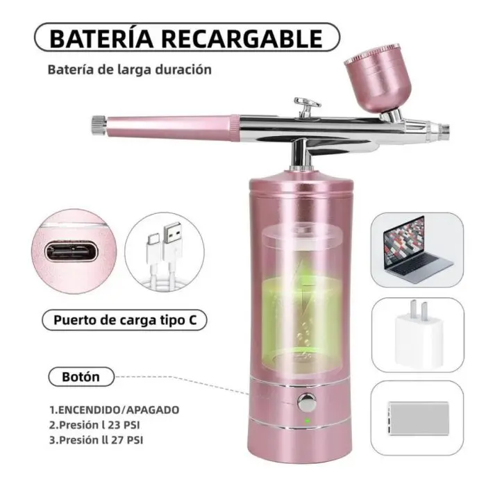 Aerógrafo Portatil Aromatizador Facial Y Para Pintura de UñasMedidas en imágenes.