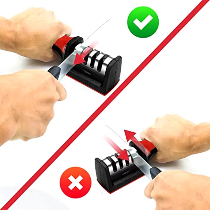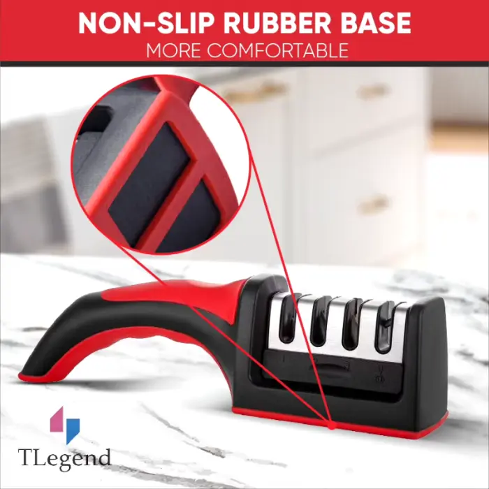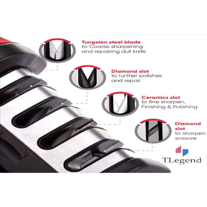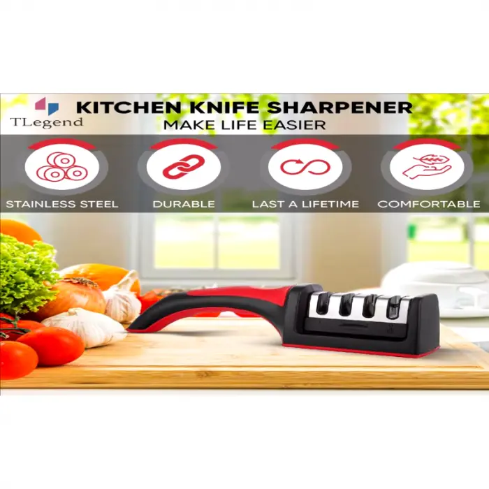 • Fabricado en plástico inyectado duro. • Con apliques de goma roja antideslizante. • Etapas de afilado: 1 - Piedra de afilado inicial. 2 - Alisado de precisión cerámico. 3 - Pulido cerámico. • Rápido y efectivo. • Base antideslizante. • Mango ergonómico. • Peso: 150grs