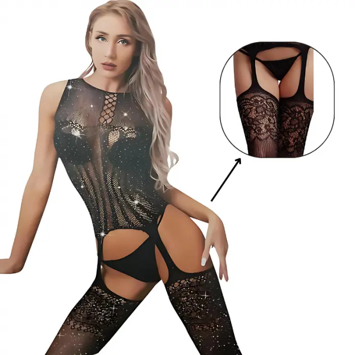 Body Entero Erotico de Micro Red Elastizado con Brillos