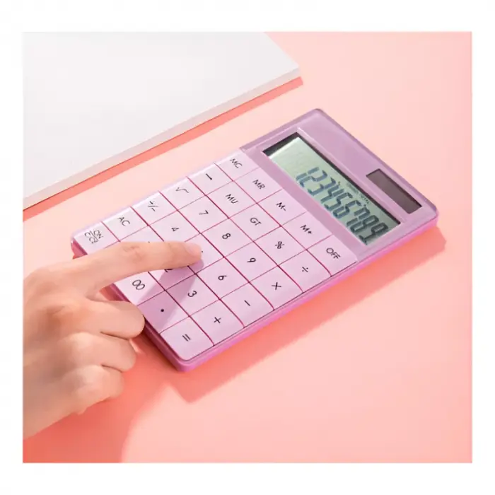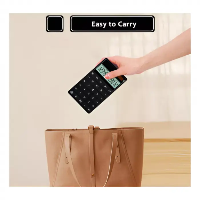 Botón de resina: hecho de material de resina ABS, alta resistencia, buena tenacidad, duradero y resistente al desgaste, pantalla de 12 dígitos: fuentes grandes, las fuentes de la pantalla son claras de un vistazo cuando se usa la calculadora.