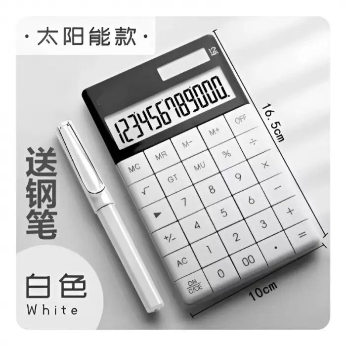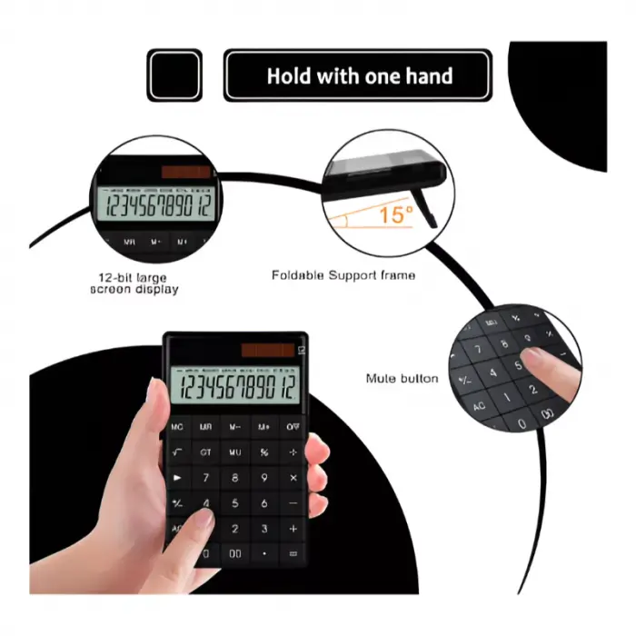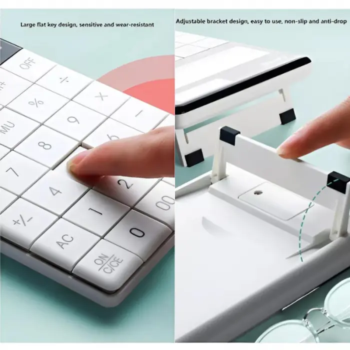 Dual power dual power: panel solar + batería de botón reemplazable de 1.5v en la parte posterior, para que su calculadora se pueda usar sin problemas y tenga una batería de larga duración, Teclas planas: teclas grandes de resina ABS, números claros, antideslizantes y duraderas.