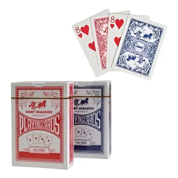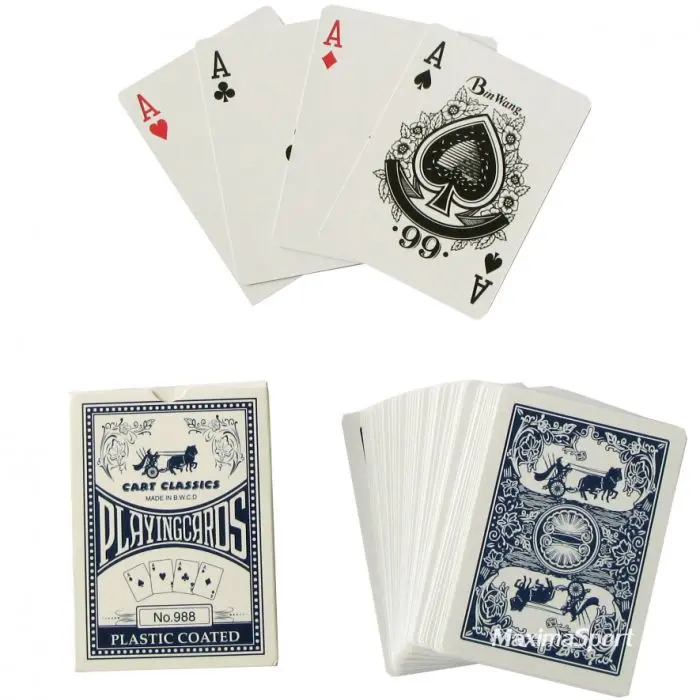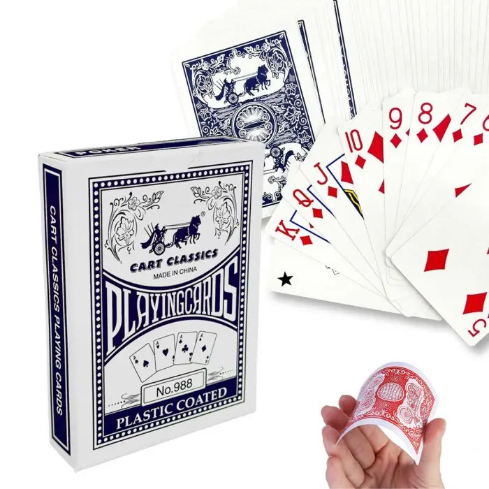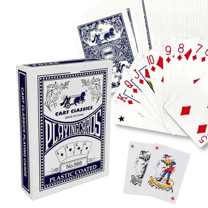 Estas cartas clásicas están recubiertas de plástico de alta calidad y brindarán muchas horas de juego sin importar cuál sea su juego.- Nuevo en paquete sellado.- 52 cartas + 2 comodines