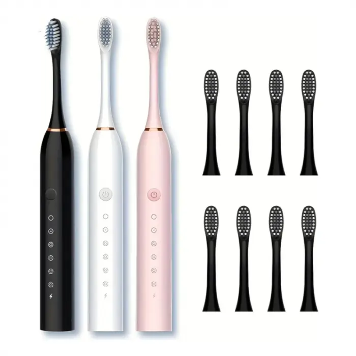 Potente limpieza sónica: El cepillo de dientes eléctrico adopta tecnología sónica avanzada, que puede realizar una limpieza potente y de bajo ruido por trastes de alta frecuencia. En comparación con los cepillos de dientes ordinarios, los cepillos de dientes sónicos pueden producir hasta 45,000 limpiezas eléctricas microsónicas/min, que pueden llevar líquido profundamente a los dientes, alcanzando eficazmente las profundidades y realizando una limpieza profunda. Con la ayuda de nuestro cepillo de dientes ultrasónico, la salud de los dientes y las encías se puede mejorar en solo 2 semanas.