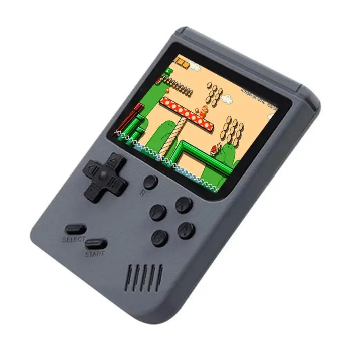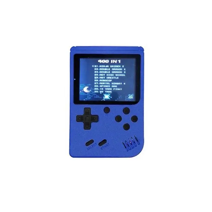 Consola portátil 400 juegos. Pantalla color 2.4. Sistema operativo 8 bits. Carga por USB. Medidas 8 x 12 cm. Se envían colores surtidos a disponibilidad.