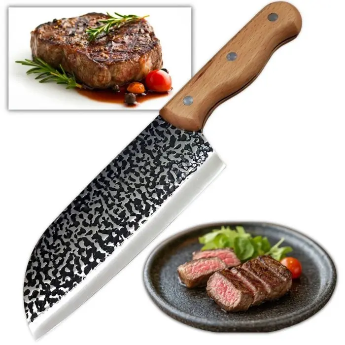 Potencia y precisión en tu cocina con esta hachuela diseñada para cortar carne, huesos y piezas grandes con facilidad. Ideal tanto para uso profesional en carnicerías como para cocineros que buscan un cuchillo versátil en el hogar.