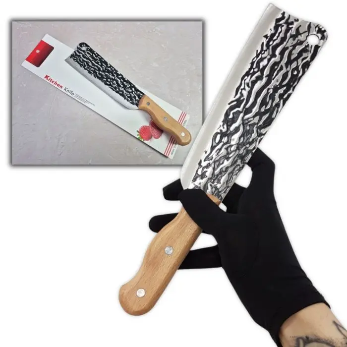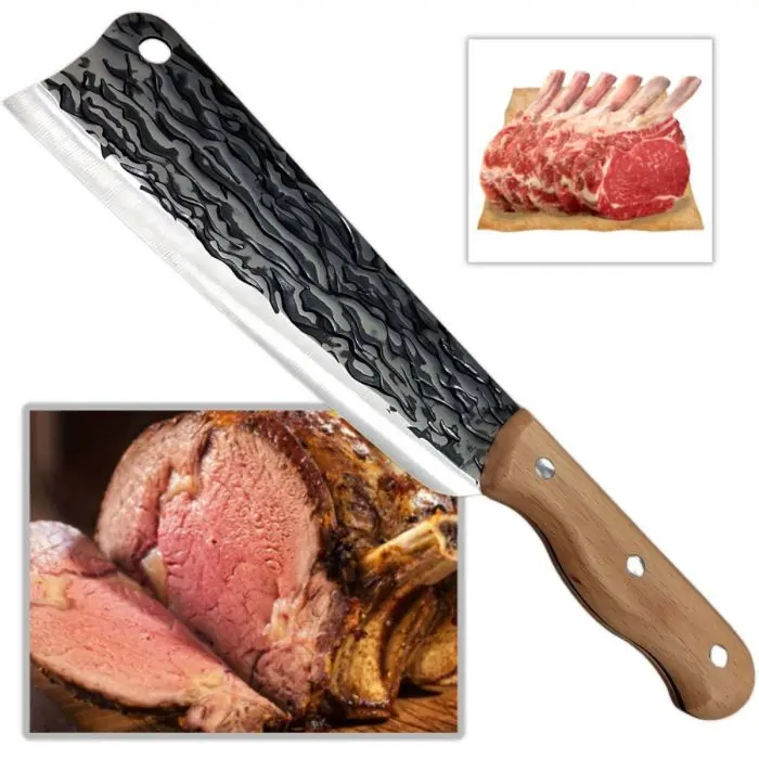 Potencia y precisión en tu cocina con esta hachuela diseñada para cortar carne, huesos y piezas grandes con facilidad. Ideal tanto para uso profesional en carnicerías como para cocineros que buscan un cuchillo versátil en el hogar.