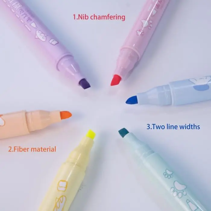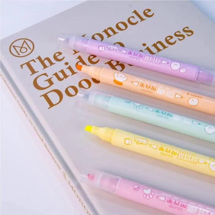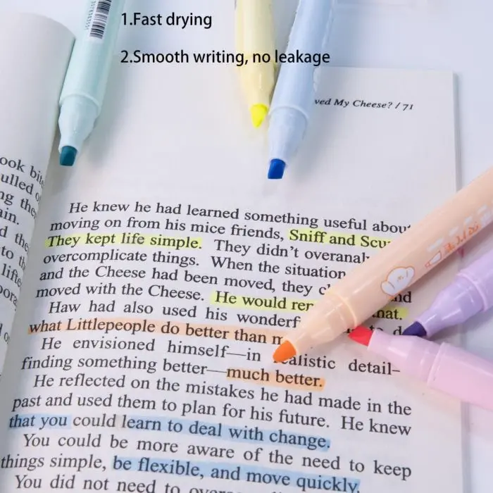 - El extremo del resaltador es una punta de cincel estrecha moldeada, que se puede utilizar para resaltados anchos, subrayados finos y piezas pequeñas de la punta del bolígrafo también se puede utilizar para escribir notas.