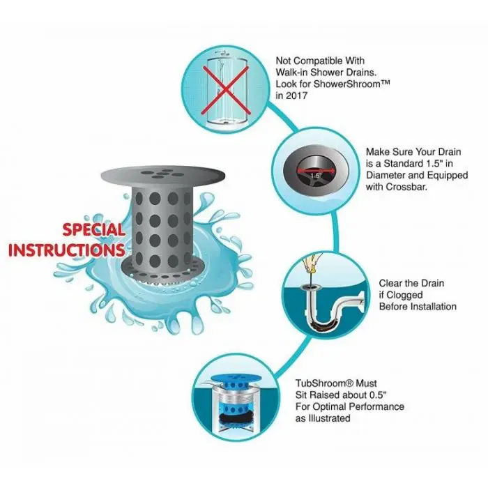 previene drenajes de tina obstruidos: este protector de desague y recogedor de cabello tubshroom esta diseñado para atrapar sin esfuerzo cualquier tipo de cabello humano o de mascotas, evitando desagues obstruidos y costosas visitas al plomero, sin interrumpir el flujo de agua. sin receptor de drenajes: tubshroom cabe dentro del desague, recolectando y ocultando cuidadosamente el cabello a su alrededor, a diferencia de los antiesteticos tapones normales para atrapar el cabello que se colocan sobre el desague. Se adapta a desagues de bañera estandar de hasta 4.5cm de ancho. Color: Gris Medidas: 5.5cm x 5cm