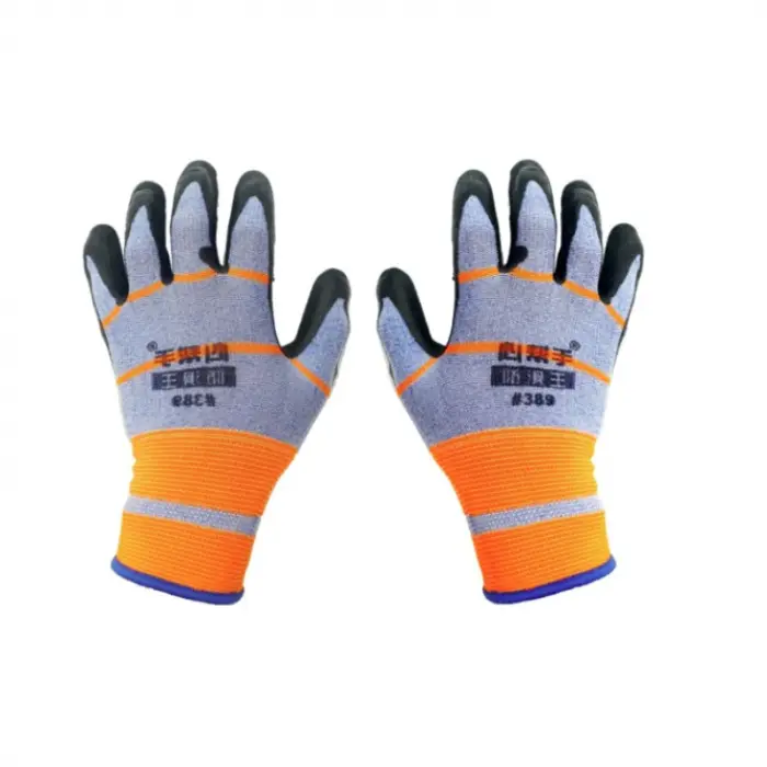 Tela de algodón con palmas recubiertas con nitrilo lo que hace que tenga buen agarre y sea anti corte.