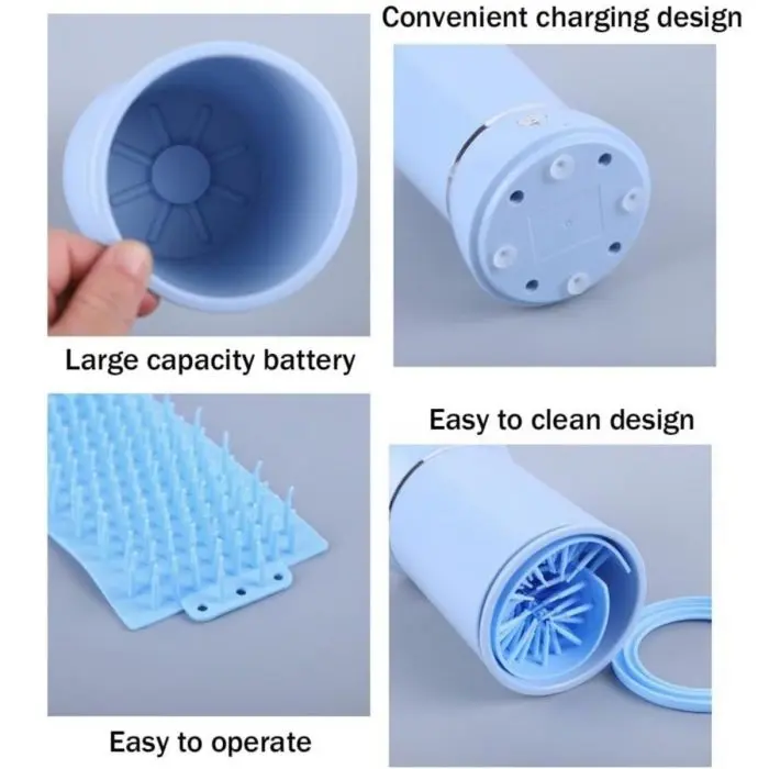 Esta taza de limpieza de patas es la solución para mantener las patas de tu perro limpias con el mínimo esfuerzo. Diseñado pensando en la comodidad, este limpiador de patas fácil de usar cuenta con un solo toque para una limpieza perfecta. Sus cerdas suaves garantizan una experiencia de aseo segura y relajante.
