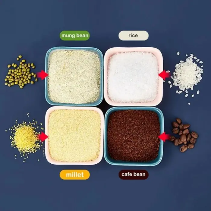 4). Suave y fácil de limpiar: las amoladoras y amoladoras de alimentos utilizan tecnología de pulido, suave y fácil de limpiar; no apto para alimentos húmedos, los recipientes y las bases no se pueden lavar con agua.